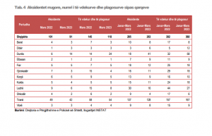 Në raportin më të fundit të publikuar nga INSTAT tregohet se gjatë tre-mujorit të parë 2023, në Shqipëri janë regjistruar 263 aksidente rrugore me 360 persona të përfshirë në to (viktima dhe të plagosur).