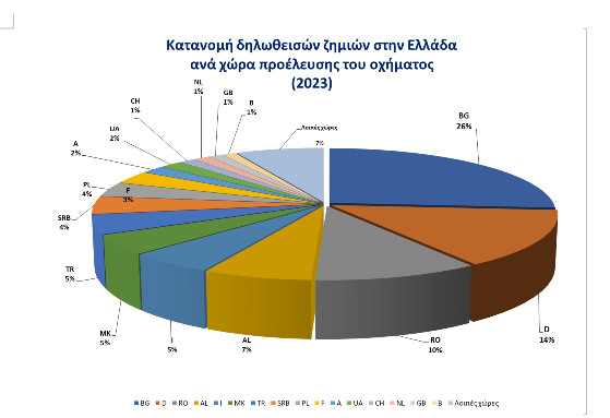 Vendin e parë e zënë aksidentet nga automjetet me targa bullgare të cilat arritën në 1165 në vitin 2023, (26.6% e të gjitha aksidenteve).