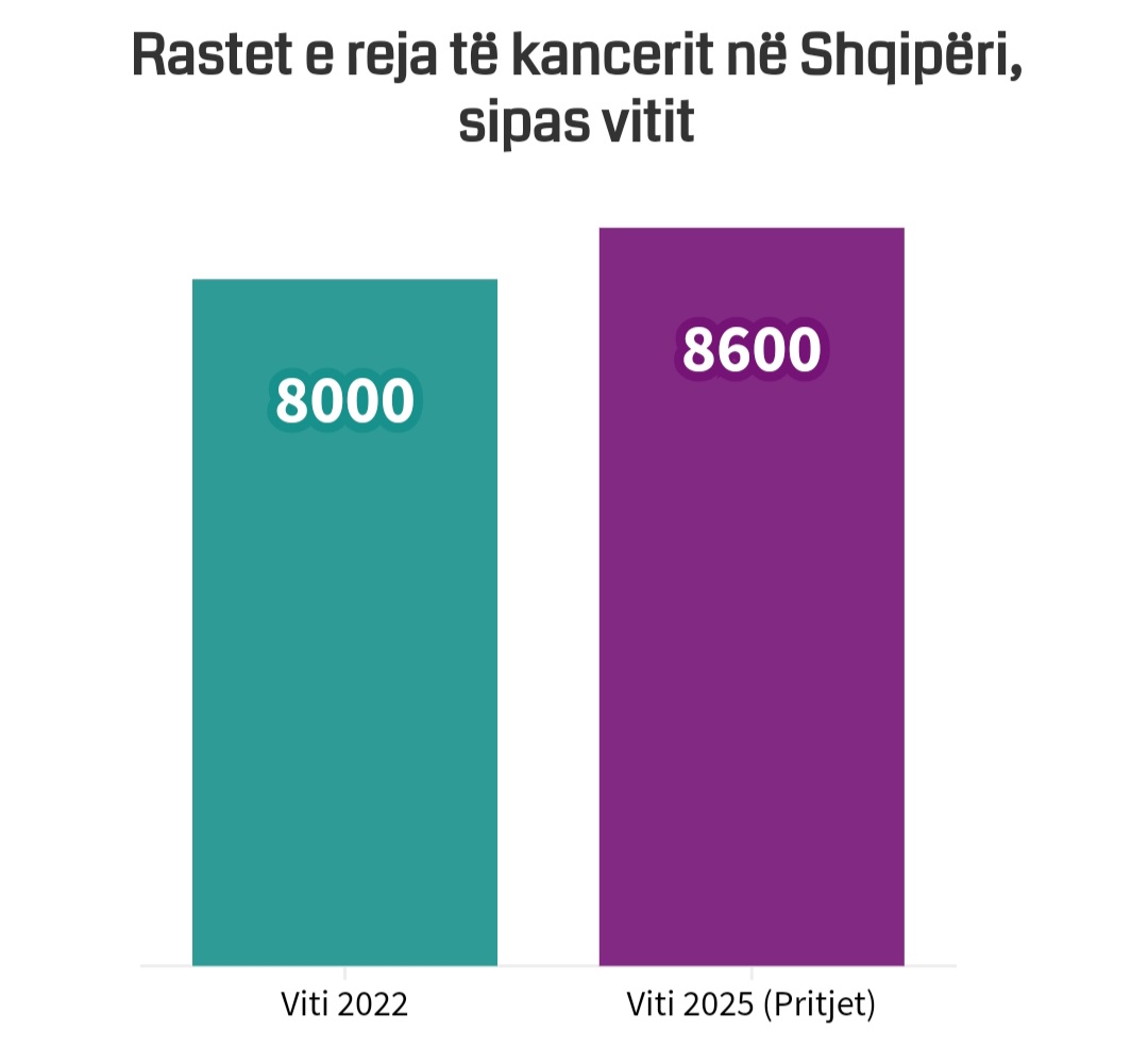 Konkretisht në vitin 2022 janë konstatuar rreth 8,000 raste të reja të individëve të prekur nga kanceri ndërkohë që vitin e ardhshëm pra në vitin 2025 pritet që të jenë 8,600 raste të reja në total.