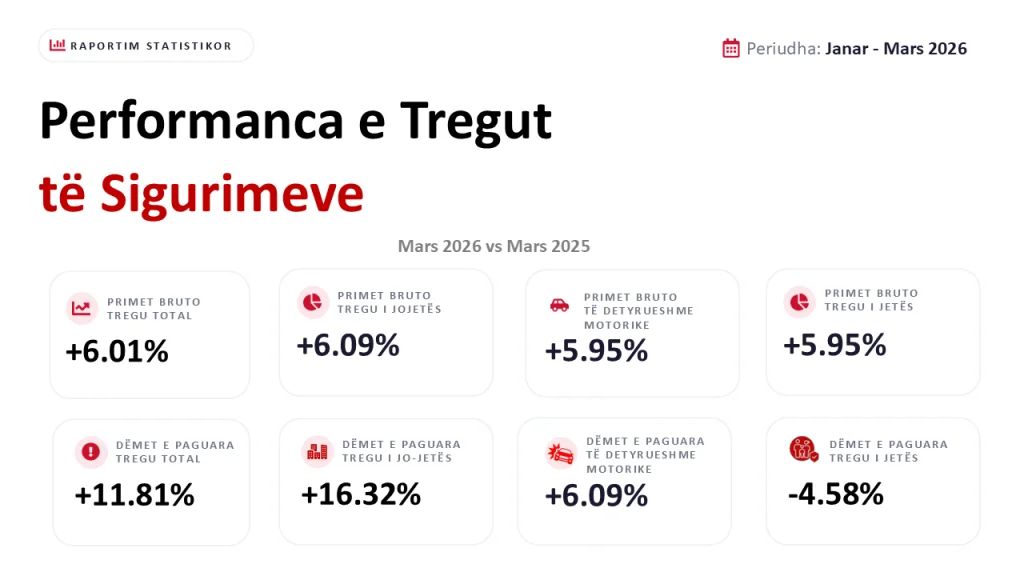 Gjatë periudhës Janar – Mars 2026, tregu i sigurimeve në Shqipëri ka shfaqur një ecuri pozitive në të gjithë treguesit kryesorë, duke reflektuar një zgjerim të volumit të aktivitetit.