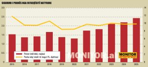 Statistikat e Autoritetit të Mbikëqyrjes Financiare (AMF) tregojnë se për vitin 2025, vlera e primeve të shkruara bruto në sigurimin nga zjarri dhe forcat e natyrës ishte 2.43 miliardë lekë, ose rreth 25.1 milionë euro. Kjo përkthehet në prim vjetor sigurimi prej afërsisht 10 eurosh për frymë.